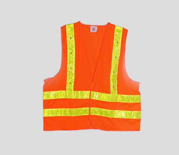 Material:100%poly ester 120g/m2 mesh with high visibility reflective tape 5cm width & 16 LED light
