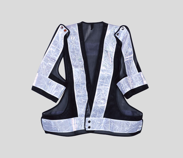 Material:100%poly ester 60g/m2 mesh with high visibility reflective tape 5cm width